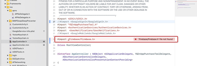 首个报错: @import Firebase;就报错了,Module ‘Firebase’ not found