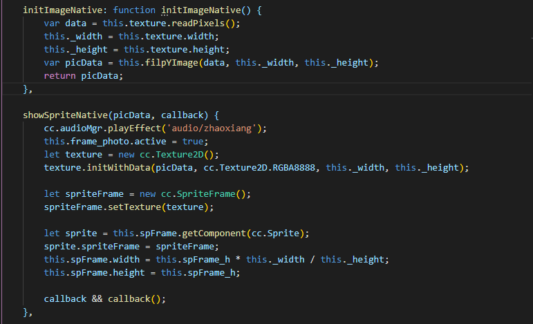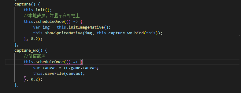 截图的代码也全部截图发出来了,就只是在capture_wx后面有一个saveFile,用的微信接口,展示与保存图片