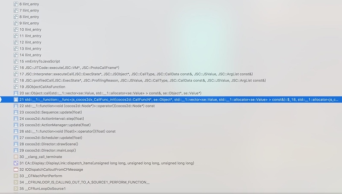 错误应该是个访问违例,堆栈如下,不太熟XCODE,不知道怎么复制文本,只好截图了