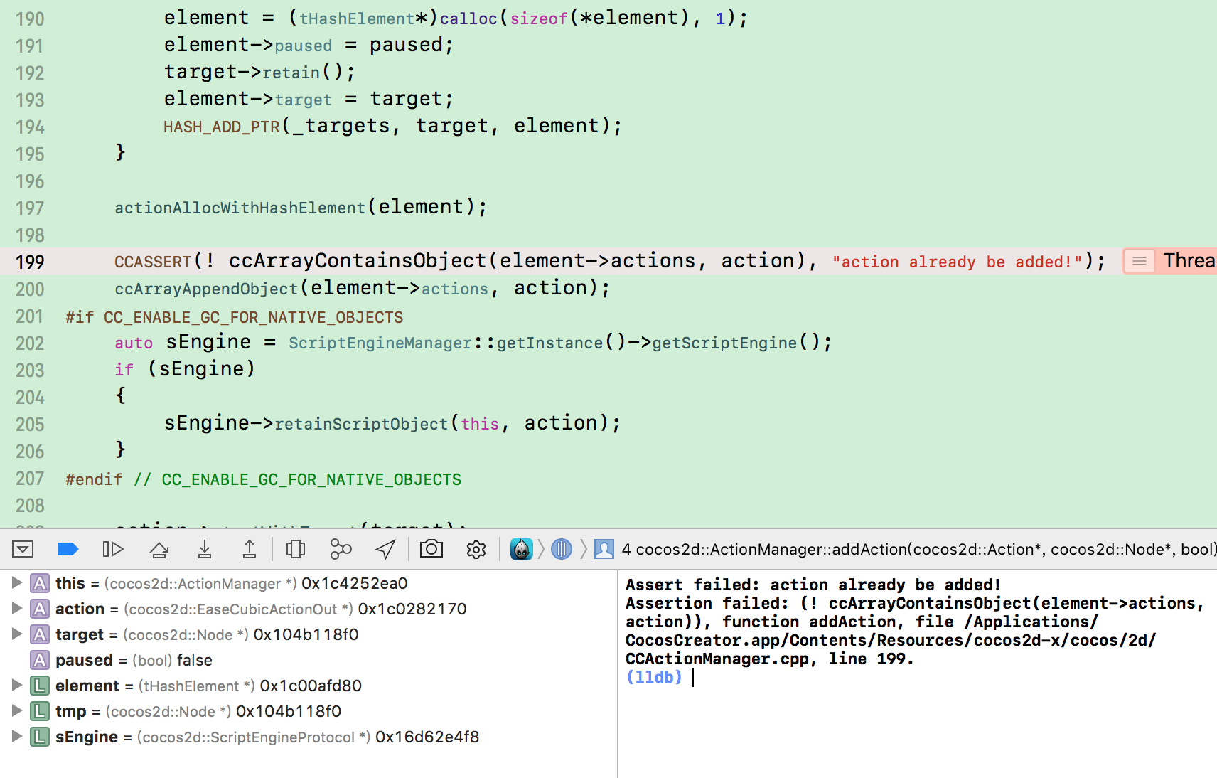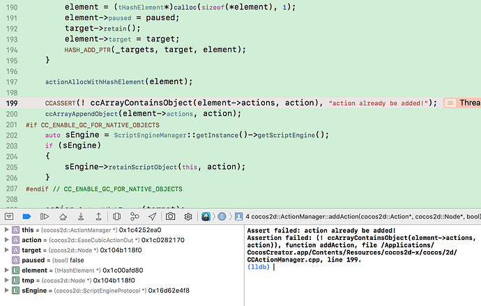 由cocos转的工程,Android下正常运行。iOS中快速点击会导致崩溃。