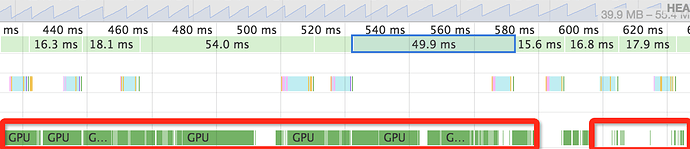 在chrome做看性能时,只关注了frame这行,不断优化,结果往下看gpu满满的绿的。所以接下来的瓶颈主要在gpu上对吗?