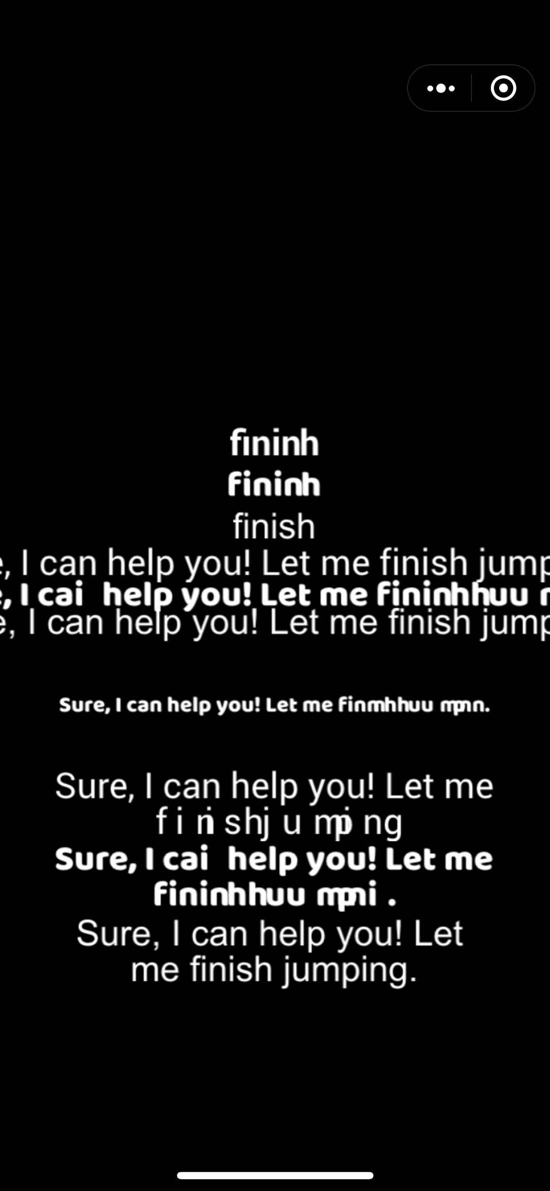 测试文本:“Sure, I can help you! Let me finish jumping.” 和 “finish”