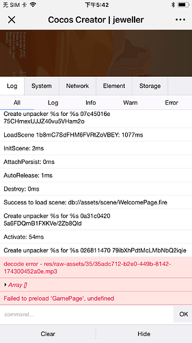 额外线索:PC端和安卓都运行正常,但是在IOS端进入欢迎页后,开始预加载游戏页,就报图上的错误,无法进入下一个场景