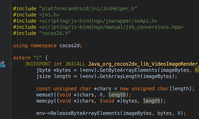 如果不引用这两个头文件,并将相关业务代码注释掉,运行正确。说明 jni 调用已经是通的。