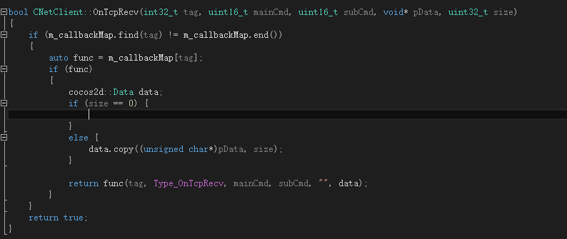 现有的项目,网络通信和加密解密是在c++层处理的。js层需要传入一个回调函数,用来接收收到的数据包。