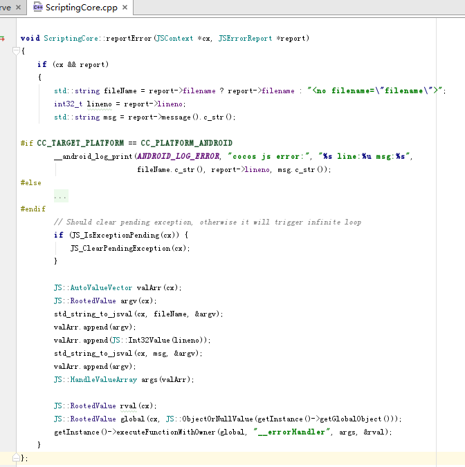 CC版本1.6.1 看到大家有在打包的 Native 下用 jsb 的 window.__errorHandle 来捕获,在 ScirptingCore.cpp 里面也有发现这个调用,但是并没有执行。