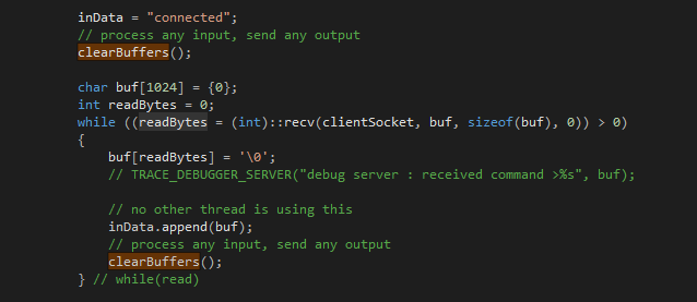 readBytes 要是一次读进来1024bytes 下面 buf[readBytes] = ‘\0’; 内存就出错了