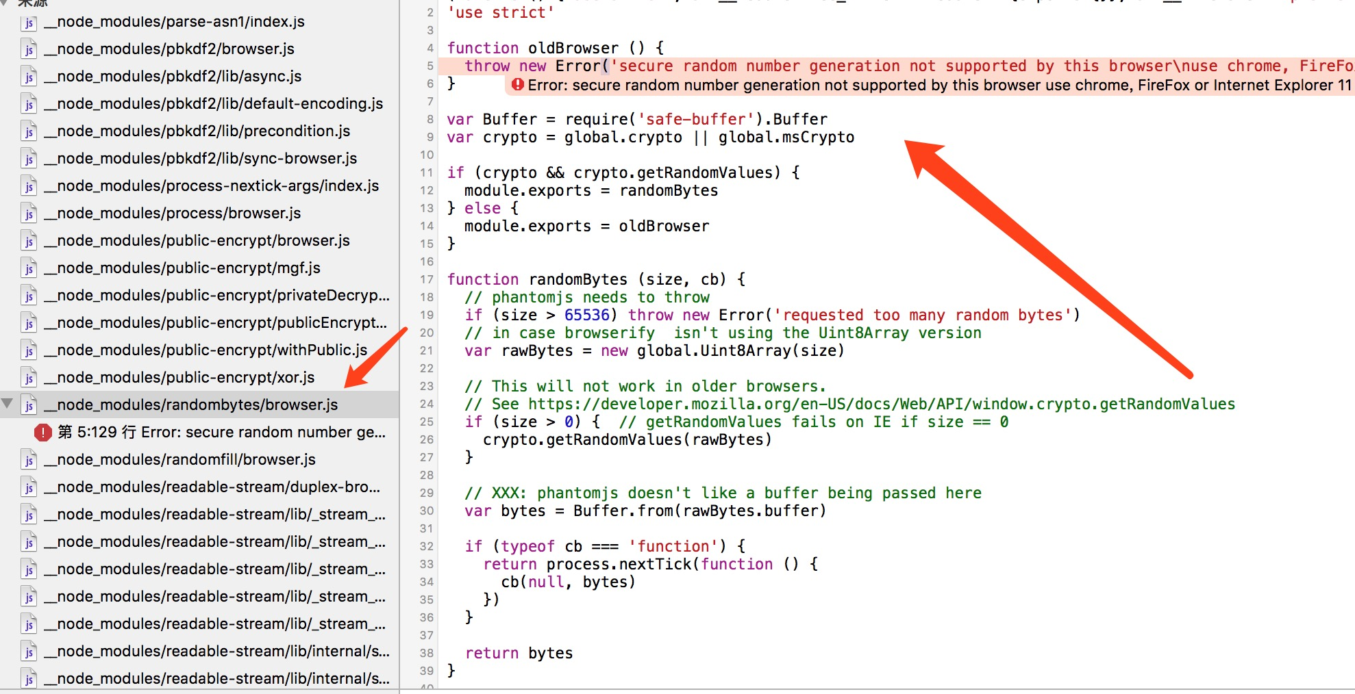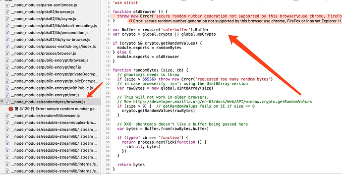我有几个不明白的地方。node 的 模块是怎么被导出来到 jsb 里面去的呢,然后这里是不是和本地弄的版本有啥关系导致 无法使用。 看上面的截图是的意思是必须有全局的 crypto。 并且定义了其getRandomValues 的接口。否则 直接抛错误