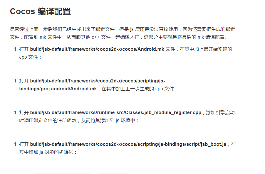 jsb自动绑定是在构建项目里面还是在creator内包引擎里面。要是在项目里面没有对应的python工具。我是在creator引擎内包里面做的,但是cocos编译配置的时候没找到jsb_boot.js.还有对应的Android.mk。我看教程是1build/jsb-default/frameworks/cocos2d-x/cocos/Android.mk 2build/jsb-default/frameworks/cocos2d-x/cocos/scripting/js-bindings/proj.android/Android.mk 3build/jsb-default/frameworks/runtime-src/Classes/jsb_module_register.cpp