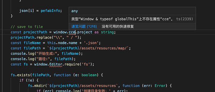 const projectPath = window.cce.project as string; const fs = window.Editor.require(‘fs’); 这两个生成地图json数据的方法为什么在1.2粒不能用了呢?