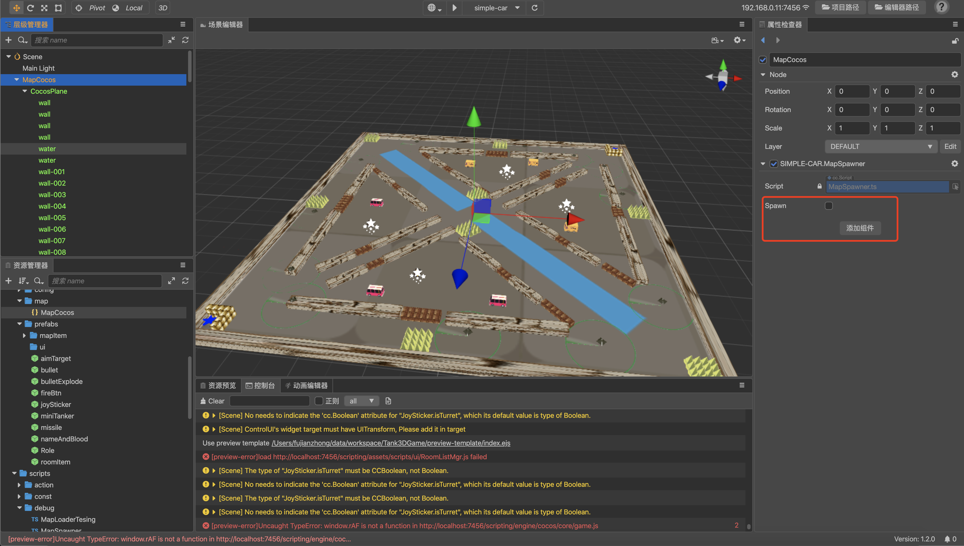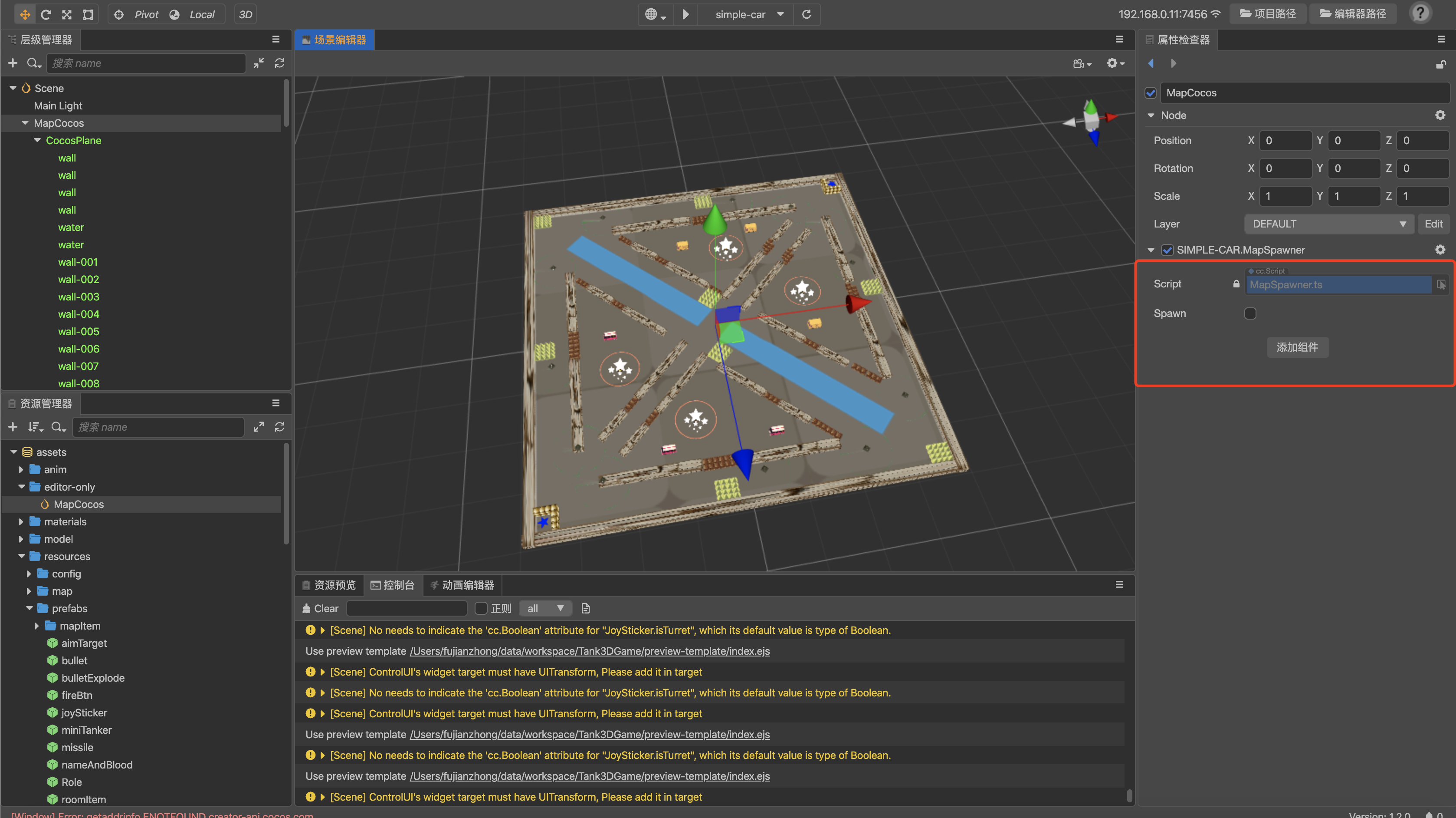 https://github.com/cocos-creator/example-3d/blob/master/physics-3d/assets/demo/simple-car/scripts/debug/MapSpawner.ts