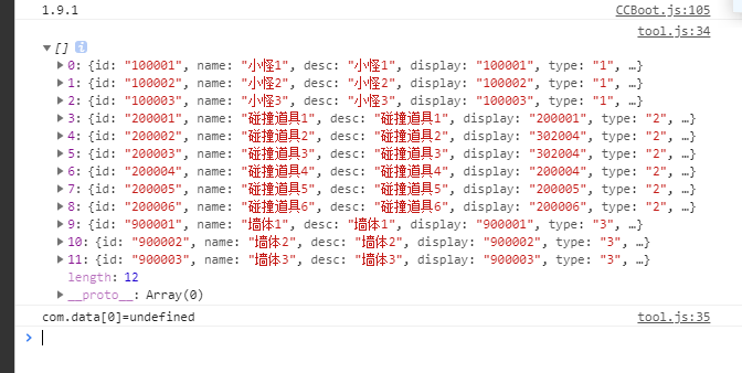 你那个加载是个异步的 你应该把打印放到 cc.loader.loadres里面 估计是这个问题 我看不到你的全部的代码 不知道为啥com.data是有数据的 但是估计就是异步加载JSON文件导致的