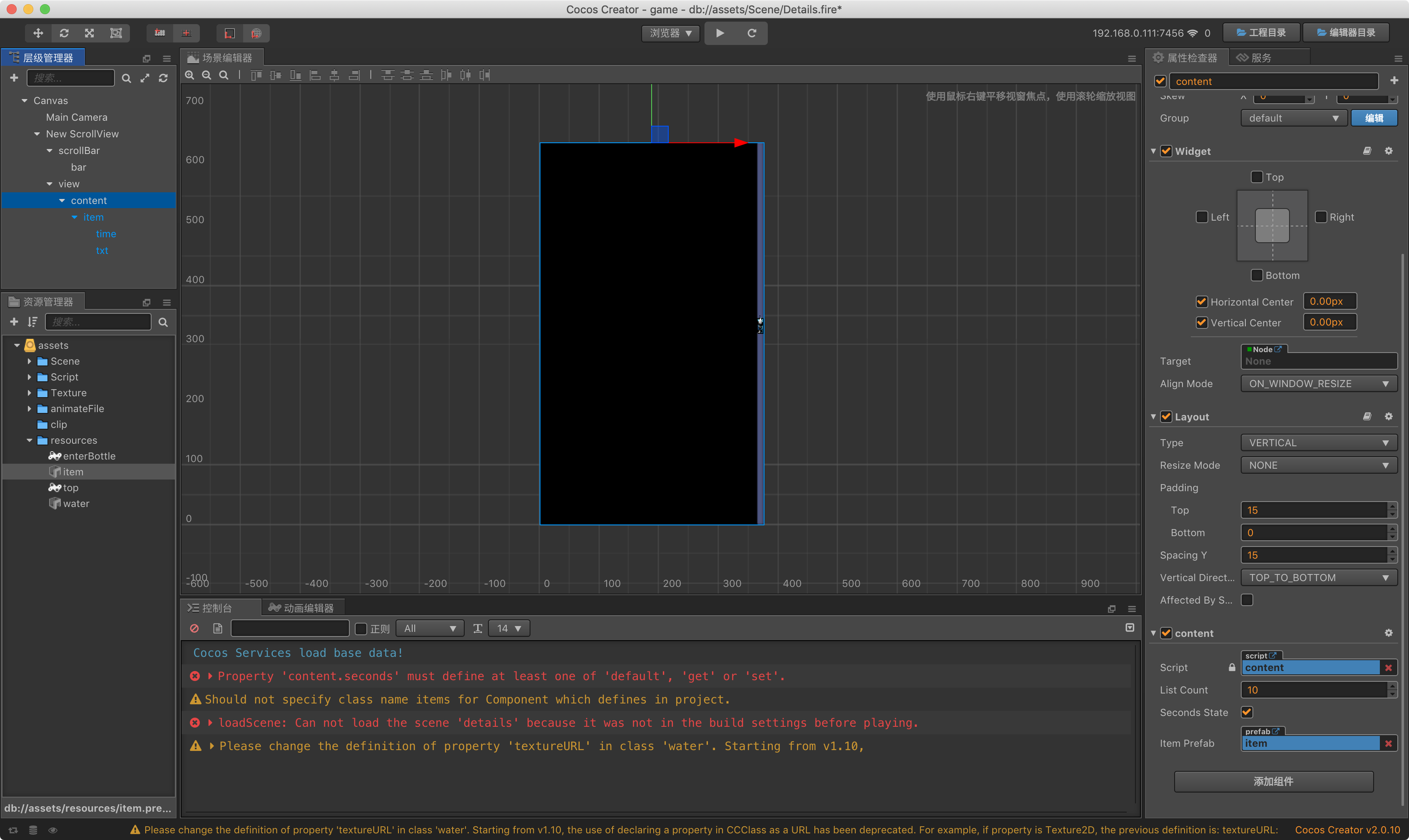 你把item.getcomponent(‘items’).init({ itemName:data.name, itemTime:data.time }) 换成 item.getcomponent(‘items’).init(data)