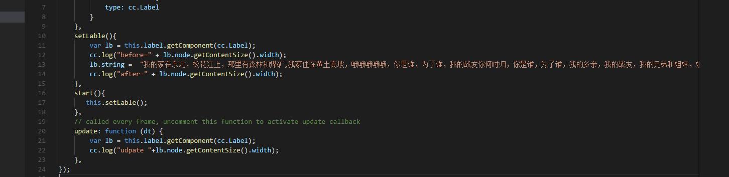 lb.string = "我的家在东北,松花江上,那里有森林和煤矿,我家住在黄土高坡,哦哦哦哦哦,你是谁,为了谁,我的战友你何时归,你是谁,为了谁,我的乡亲,我的战友,我的兄弟和姐妹,姐妹,啊啊啊啊,啊啊啊~啊啊啊,你是谁";