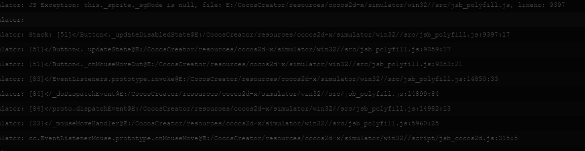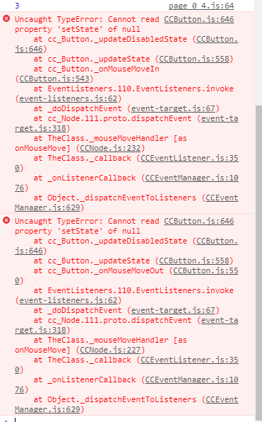 我排查到了 是因为有一个button我设置了点击事件 然后我把这个button销毁了 但是点击事件没有释放 然后就报错了