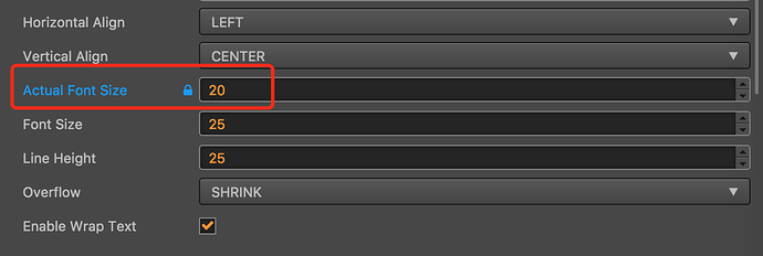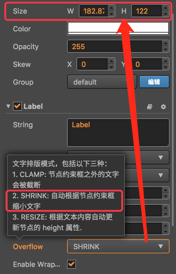 Label处于SHRINK模式,Label的字体大小受node的Size约束,改变Size大小后就可以调整FontSize了