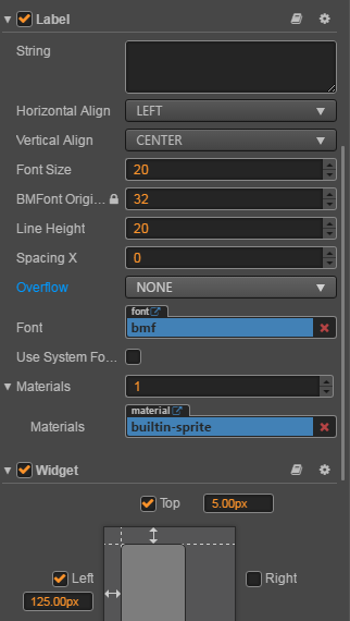 我label如图设置,是左对齐的,overflow是none,widget就是left:125 top:5 bottom:5