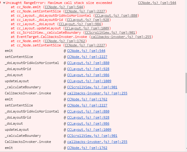 开启一个ScrollView,在content使用了一个Grid,ResizeMode使用的是Container,当在content增加子节点没有任何问题,但是我删除子节点时当全部删除的时候,就会出现死循环的堆栈错误。