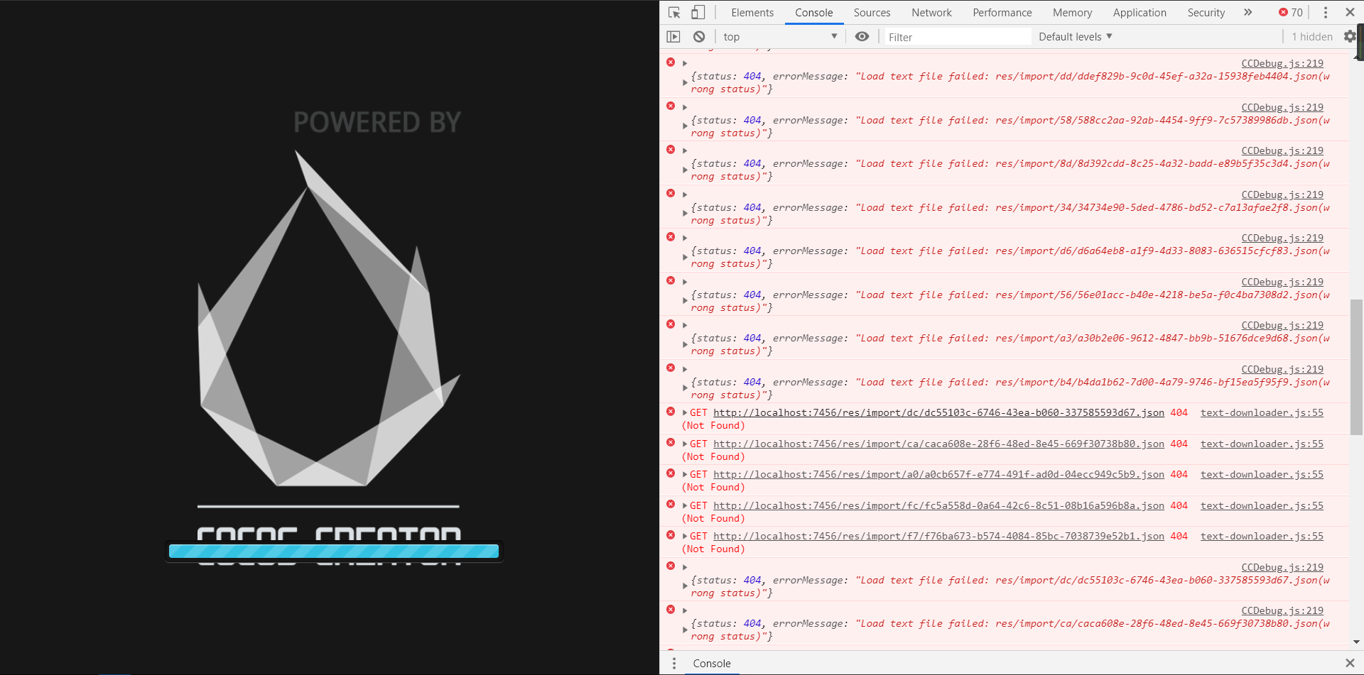 新建的项目(官方练手项目duangsheep)加入相关资源,建好页面之后运行出现Load text file failed错误,