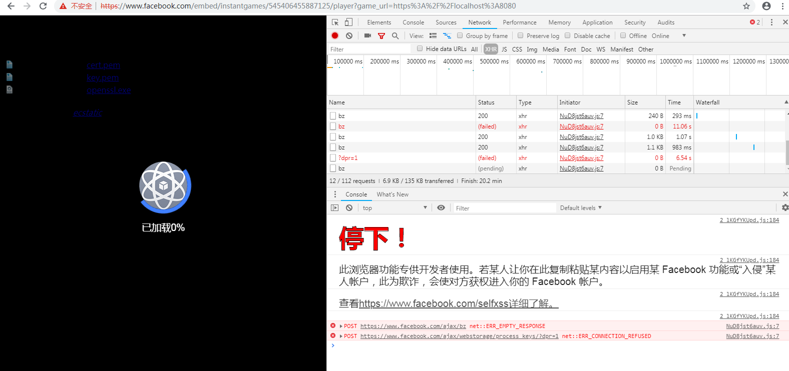 浏览器输入localhost:8080,选择继续,然后再刷新游戏,chrome浏览器的安全策略