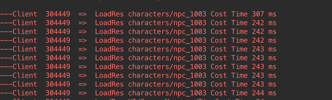 cc.log("LoadRes “+url+” Cost Time “+(finishTime-startTime)+” ms ");