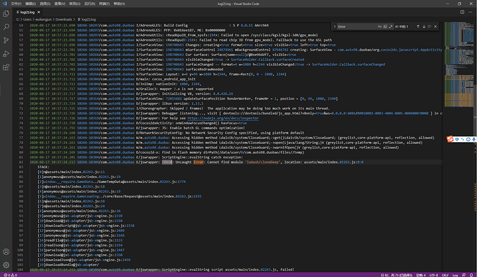 2020-08-17 10:57:24.213 10266-10304/com.auto98.duobao E/jswrapper: ERROR: Uncaught Error: Cannot find module ‘lodash/cloneDeep’, location: assets/main/index.02263.js:0:0 -