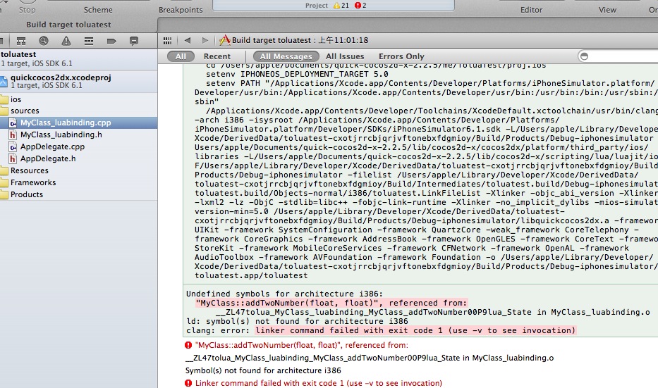 http://quick.cocoachina.com/?p=235 这是官方《导出 C/C++ API 给 Lua 使用》教程,我严格按照教程做了,编译报错,
