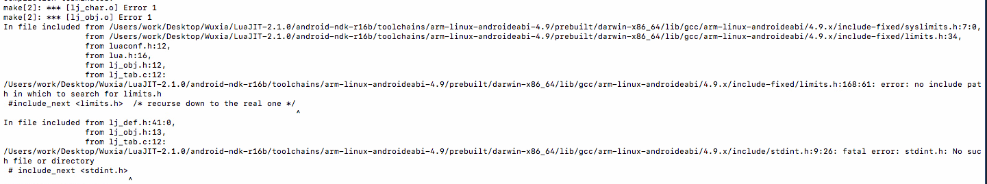 我用ndk-r16b编译你说的版本的luajit,会报错