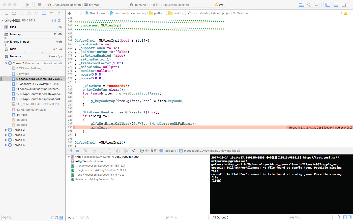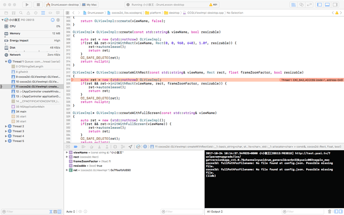 mac应用,cocos2d版本是3.13,在老版本mac系统上运行都没有问题,但是最近更新到mac10.13系统,创建GLViewImpl:create()的时候报错,glfwInit()初始化失败,求解答