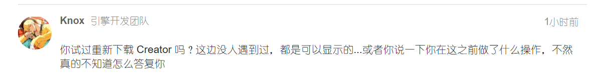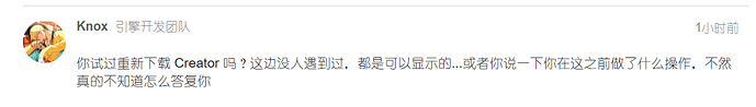 你试过重新下载 Creator 吗?这边没人遇到过,都是可以显示的…或者你说一下你在这之前做了什么操作,不然真的不知道怎么答复你