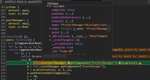 进debug以后会发现返回目标component的名字带了MissingScript的后缀导致node节点找不到指定的component