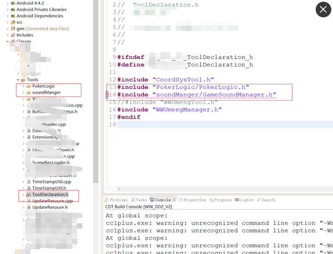 @dndnkkk mk文件设置的路径不一定适合你新增加的文件。你要把自己新增的文件的路径加进去,当然了还要看你代码的头文件路径的使用情况。你上面贴出来的是 PokerLogic/PokerLogic.h找不到,那么PokerLogic的父目录有在搜索路径吗?