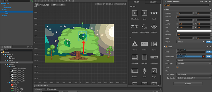 我创建了一个prefab,在其中给两个节点 leaf0, leaf1添加了点击事件,为什么总是不响应?