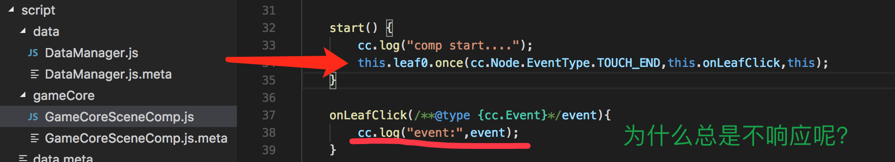 thisleaf0.on(cc.Node.EventType.TOUCH_END,this.onLeafClick.bind(this),this),多看看文档有好处