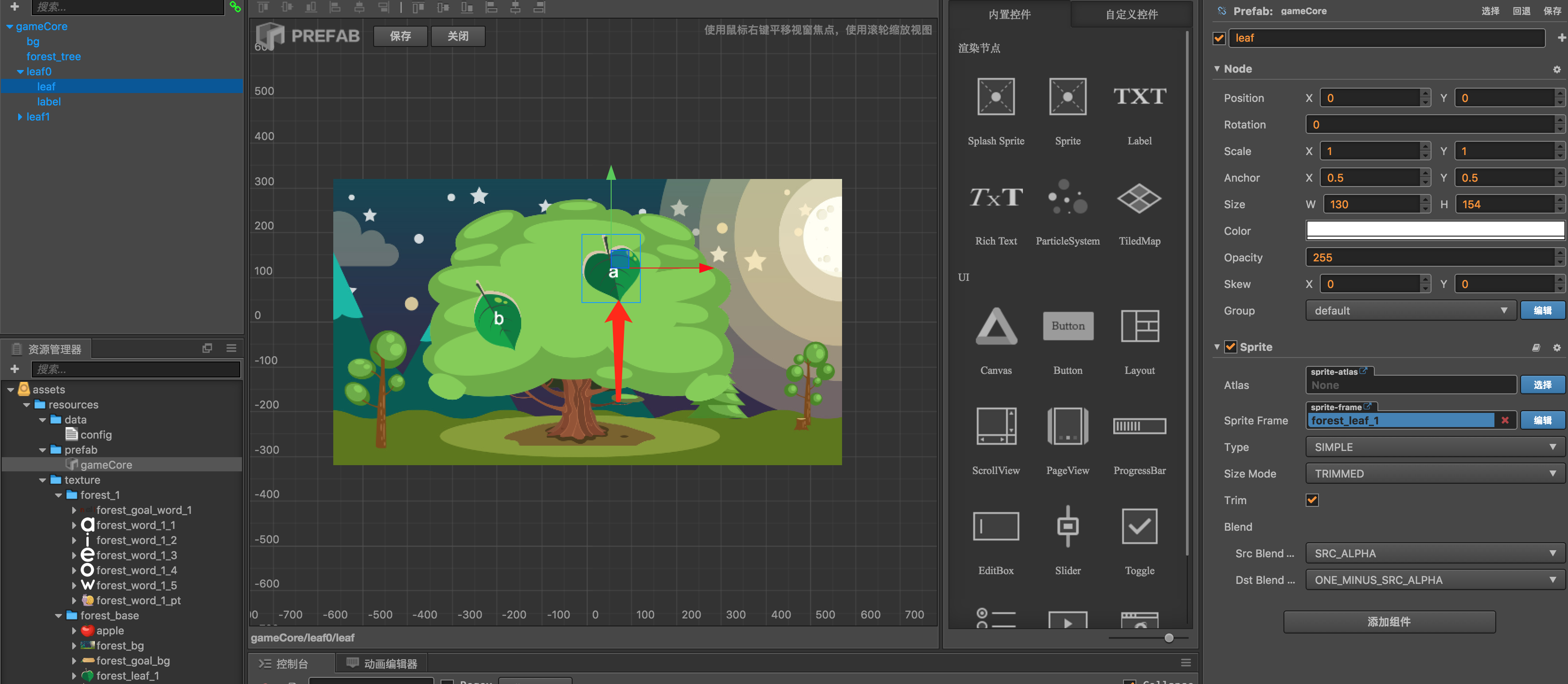 let leaf = this.leaf0.getChildByName(“leaf”);//这里获取了子对象
