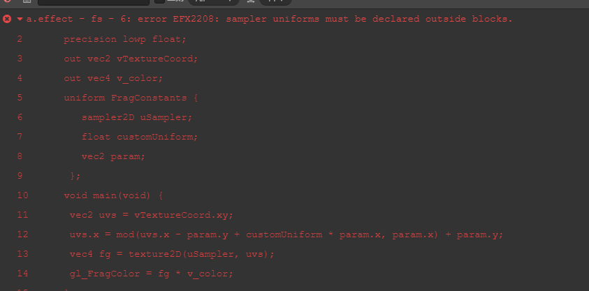 a.effect - fs - 6: error EFX2208: sampler uniforms must be declared outside blocks.