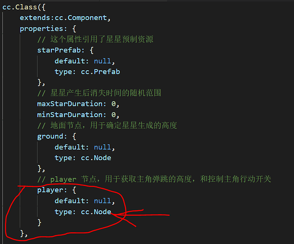 他虽然输出是说getComponent出错,实际上是找不到this.player这个参数(也就是为null),导致了getComponent找不到的问题(根据你之前的出错,我怀疑你this.player没有定义)