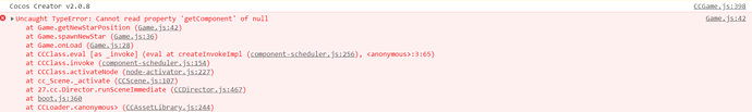 我知道,42行就是 var randY= 这句,说是getComponent的问题,但是实例里面就是这么写的。