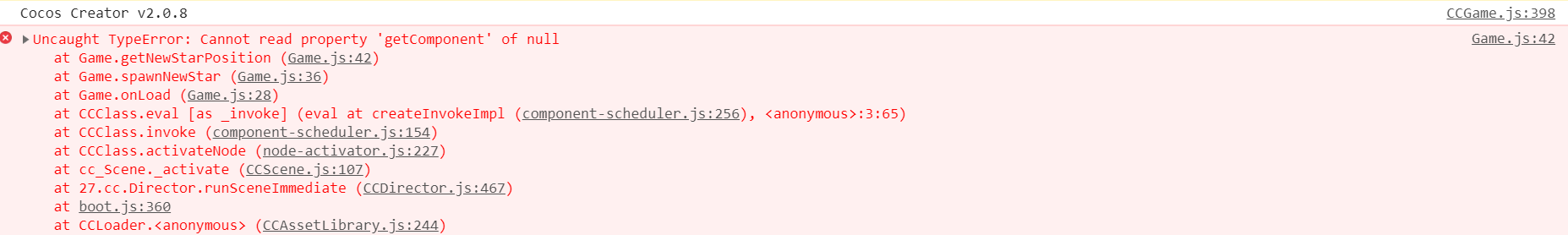 报错的东西明显不一样了啊。你看看报错右边的灰色字体,那个是显示你的错误地点的,通常都能找到你报错的地方。Game.js是你报错的脚本,42是你报错的代码行数