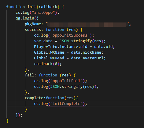 oppo小游戏调用login方法这样写的,但是打印了initOppo后无论成功失败都没有打印出下面的东西,有人知道怎么回事吗?