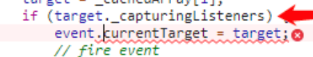 你这里报错是 event.currentTarget = target; 这个行,然后 log 是打印了 _captureListeners 为 null ?