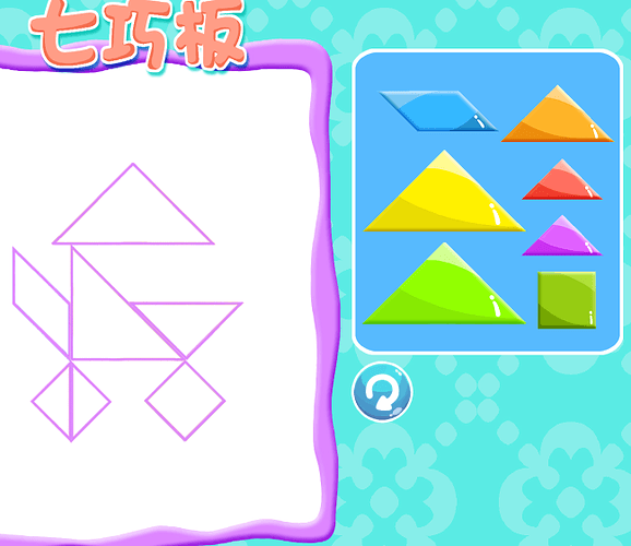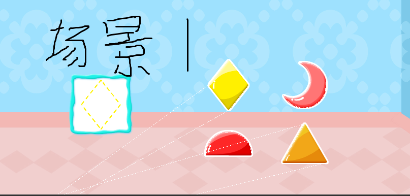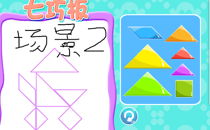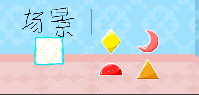 说明:切换场景用的都是cc.director.loadscene(),场景1中的四个图形都是每次用预制体重新生成的(通过判断类型改变图案和重新赋值碰撞区域的points,碰撞点都是提前计算好的)。场景2中的七个图案是固定的节点,不用重新生成,都有挂载了PolygonCollider在上面。