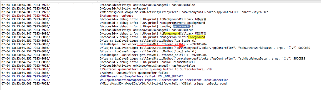 大概追踪了一下,应该是触发background事件以后紧接着触发了foreground事件,下面是事件还原的整段log(3.13.1),可以挑着看一下
