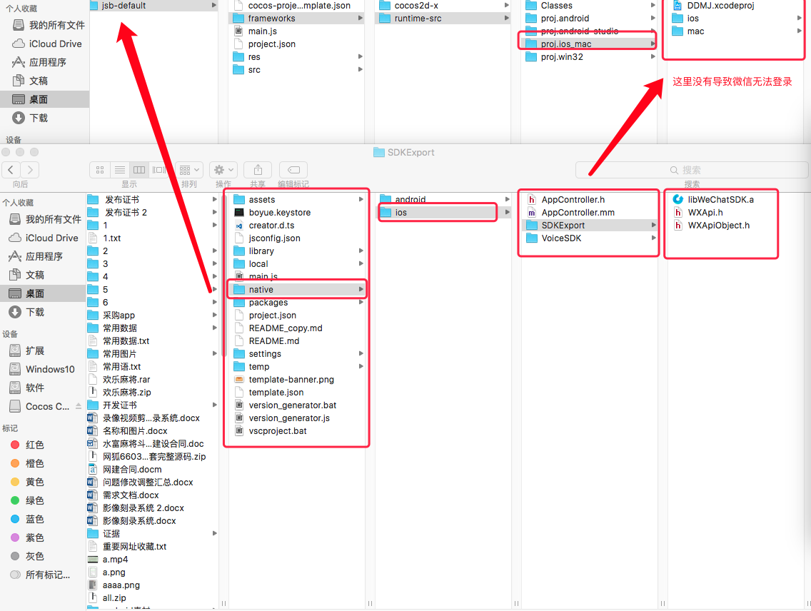 能帮我解决一下在问题吗,我这边有个新建的cocos 项目,是用cocos creator js 开发的。我cocos项目目录下面有个 native 的微信登录登录分享包,为什么打包的时候打包不过去呢,在proj.ios_mac 我看不到这个包,是怎么回事。而且打包运行以后,点击微信登录按钮,显示