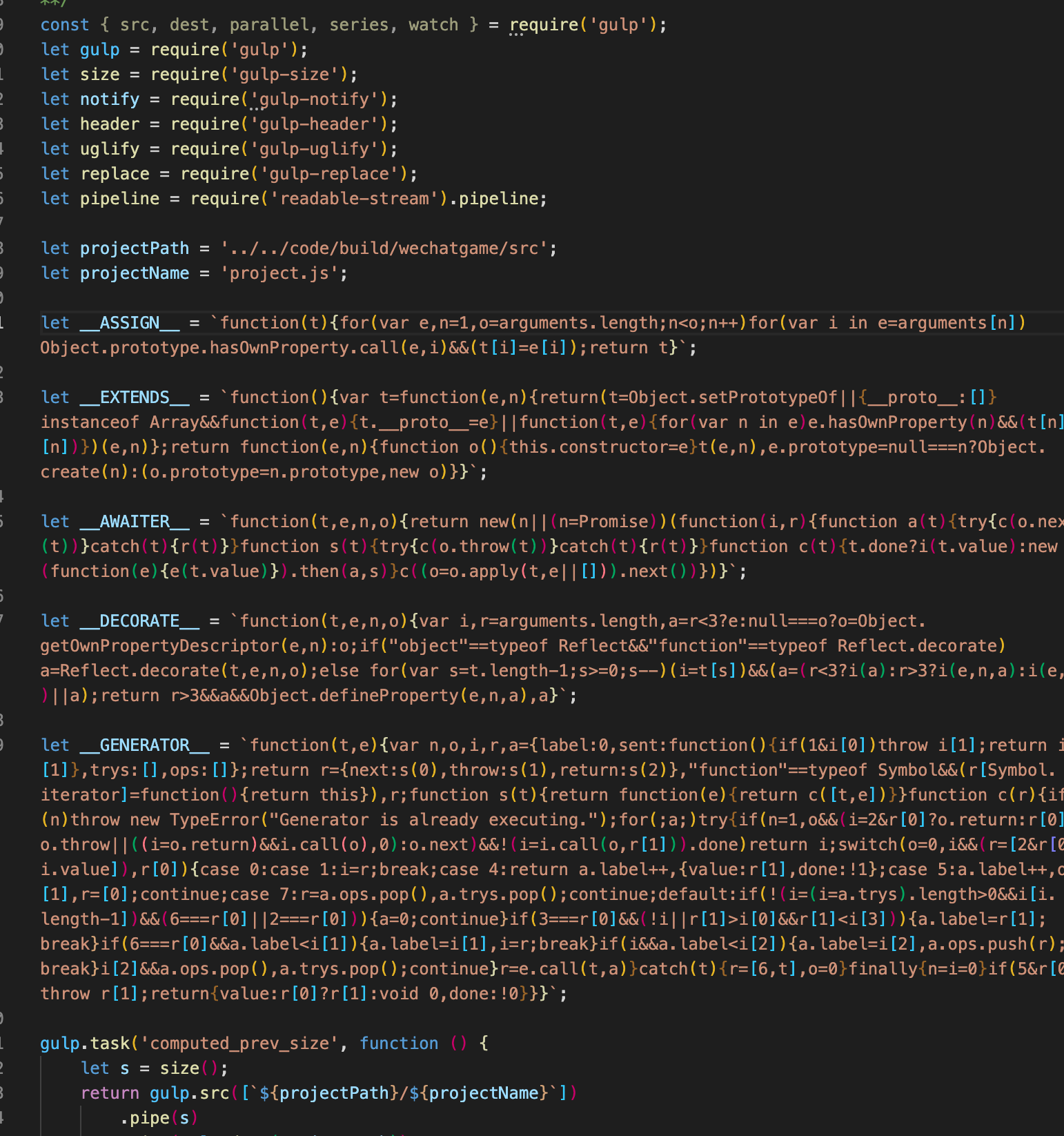 let projectPath = ‘…/…/code/build/wechatgame/src’;