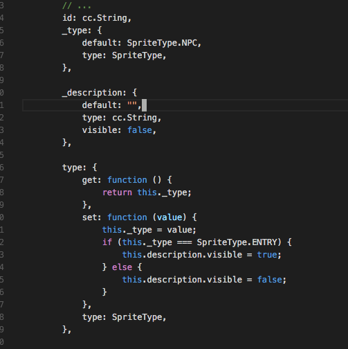 在开发一个组件, 组件中某个属性是enum类型, 希望在编辑器中这个属性值变化时, 另一个属性会动态的显示或隐藏。 在这里在set或get中,指定另一个属性的visible值时, 却被告知“TypeError: Cannot assign to read only property ‘visible’ of”, 怎么破