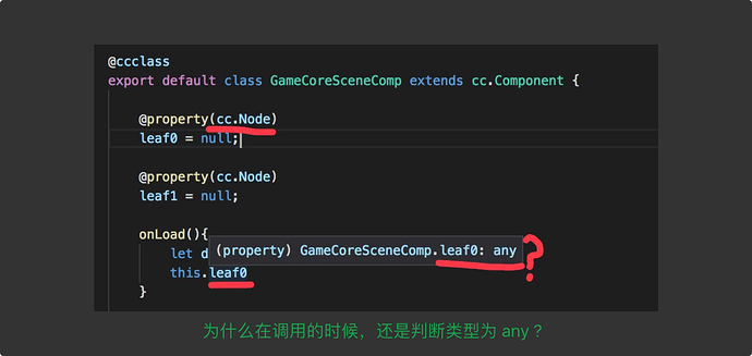 leaf0: cc.Node = null;这个cc.Node是告诉TypeScript的。所以要写两遍。