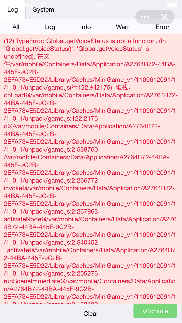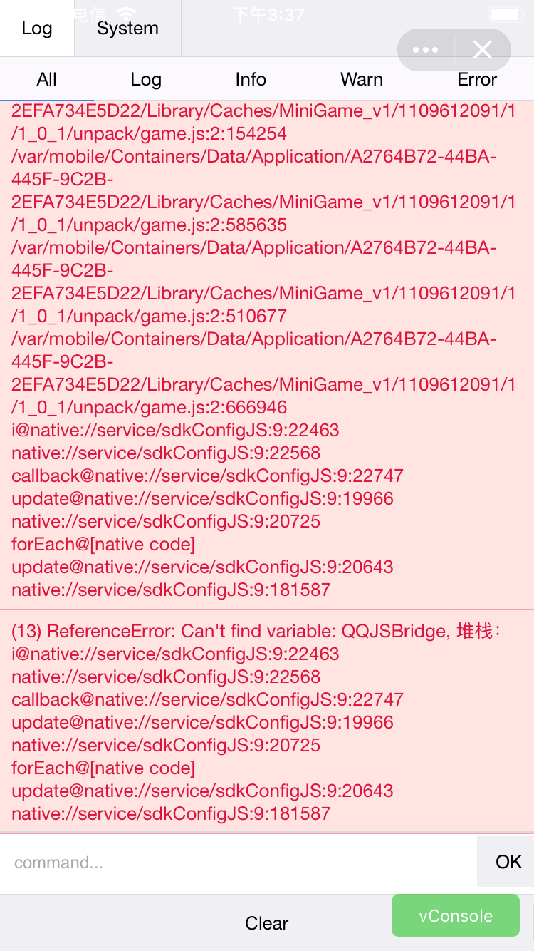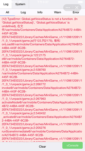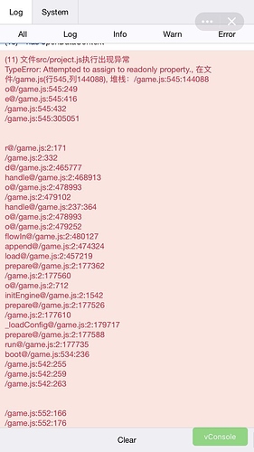 如图,目前用cocos1.10版本接入手q小游戏。android手机扫码可以进游戏,在手q小程序开发者工具中也能正常玩游戏。但在ios真机上就报这个错误。