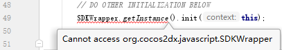 如图,代码报错:Cannot access org.cocos2dx.javascript.SDKWrapper