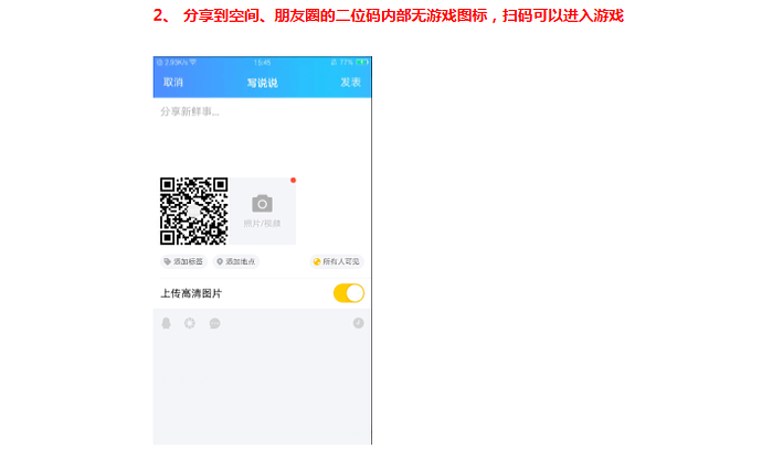 玩一玩平台默认生成分享的二维码出现了问题,建议自定义一张二维码来替换,分享时指定路径即可socialPicPath 。 多渠道分享参考链接